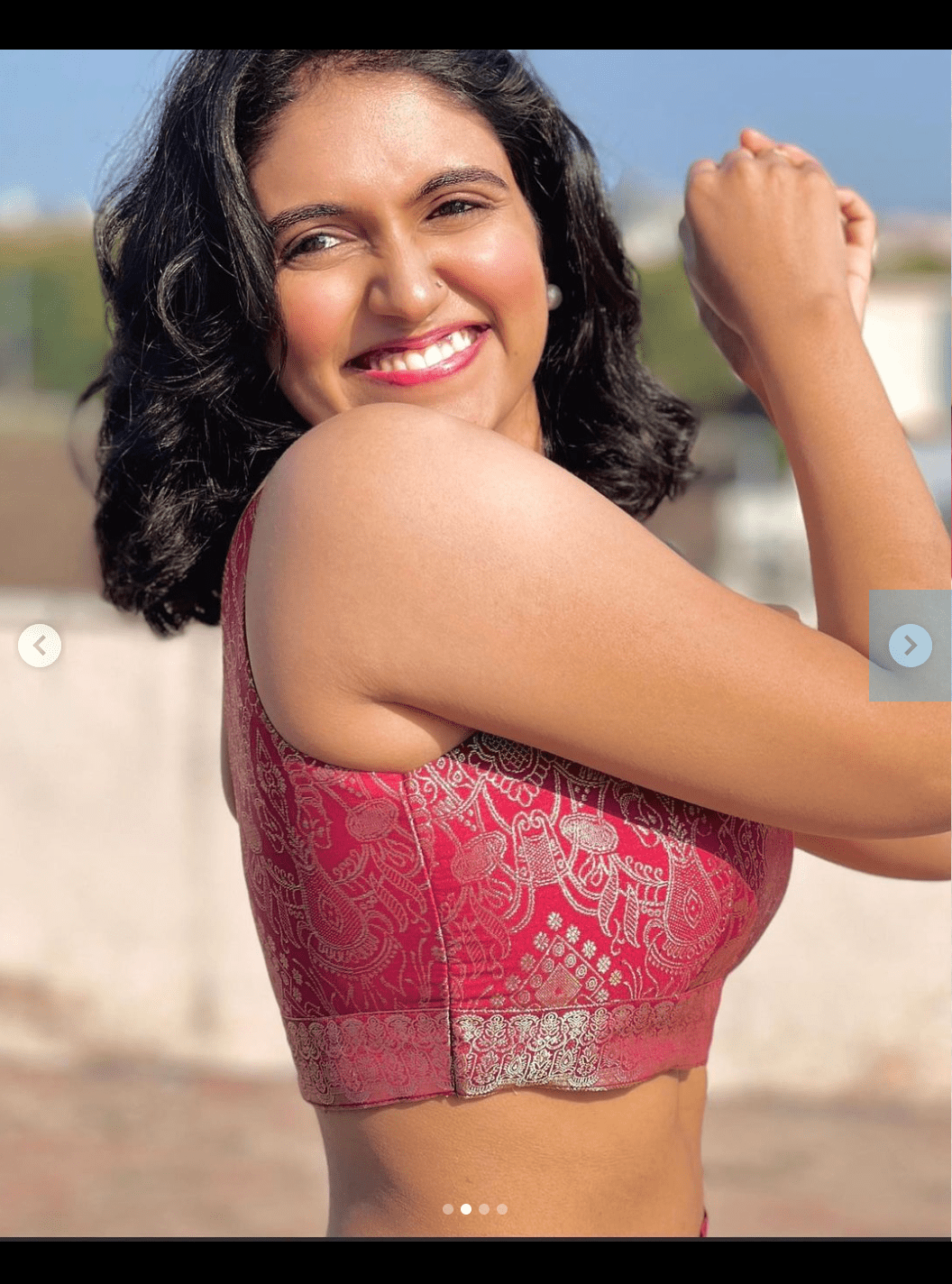 लाल ड्रेसमधील तिचे फोटो आणि तीच मोहक हसू लक्ष वेधून घेणारं ठरतं आहे
