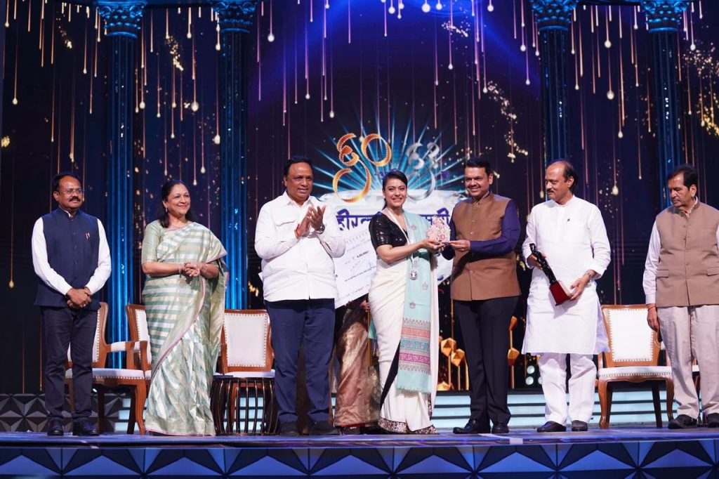 स्व. राज कपूर विशेष योगदान पुरस्काराने अभिनेत्री काजोल यांना सन्मानित करण्यात आले.
