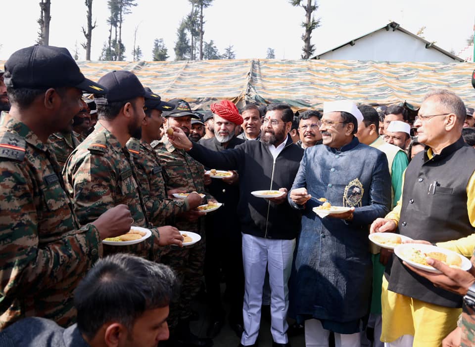 मुख्यमंत्री एकनाथ शिंदे यांनी जवानांसोबत दिवाळई फराळाचा आनंद घेतला.