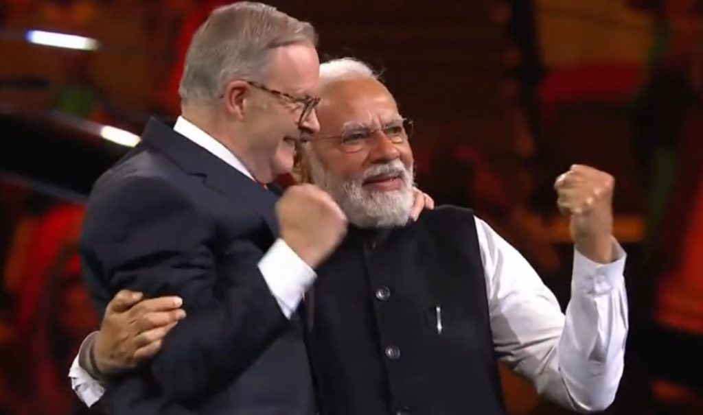 नरेंद्र मोदींचे भाषण ऐकण्यासाठी ऑस्ट्रेलियाचे पंतप्रधान अँथनी अल्बनीज उपस्थित होते.