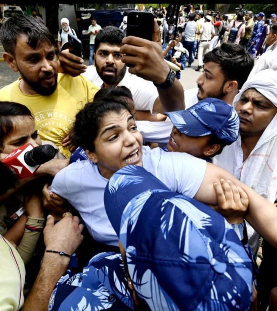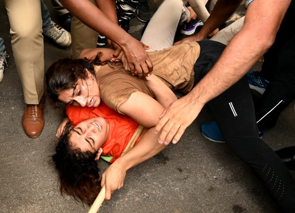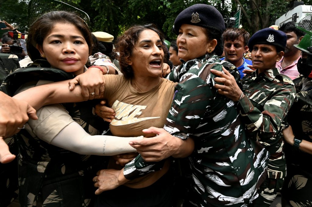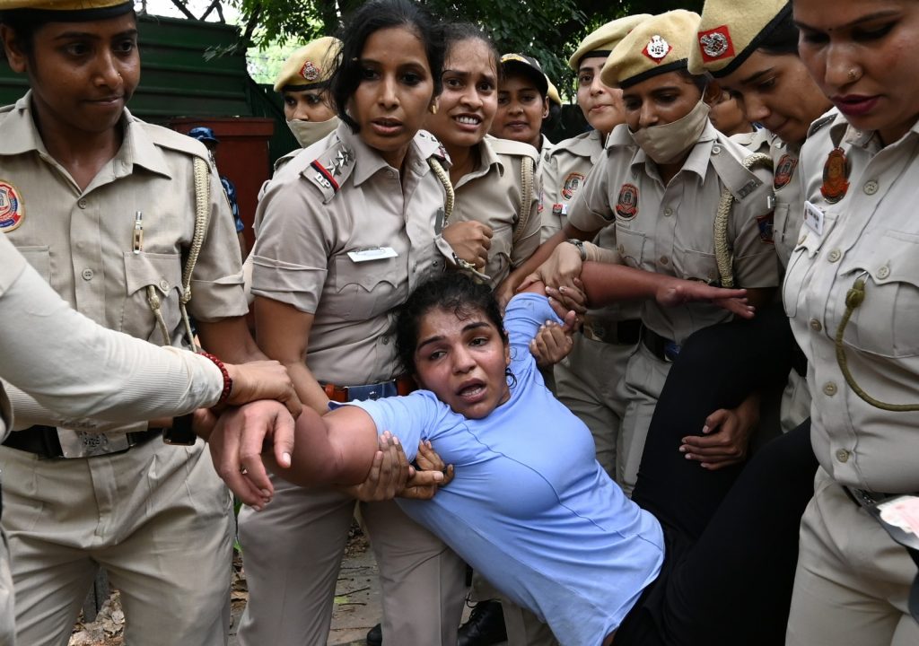 विनेश फोगट, साक्षी मलिक आणि बजरंग पुनिया यांच्यासह सर्व कुस्तीपटूंना ताब्यात घेण्यात आले.