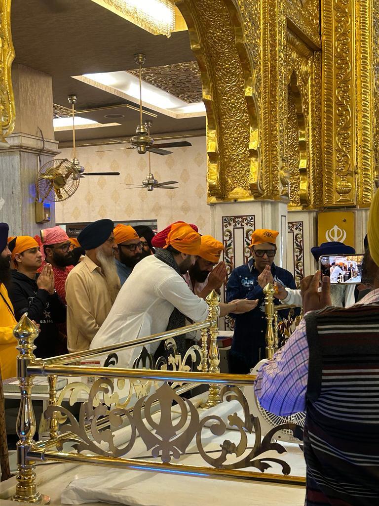 यावेळी अभिनेता रणबीर कपूर पांढऱ्या कुर्ता पायजमामध्ये दिसला. तर बॉबी देओलने फिकट गुलाबी रंगाचा शर्ट आणि पँट घातली होती. दोन्ही कलाकार संपूर्ण टीमसह गुरुद्वारामध्ये हात जोडून आशीर्वाद घेताना दिसले.