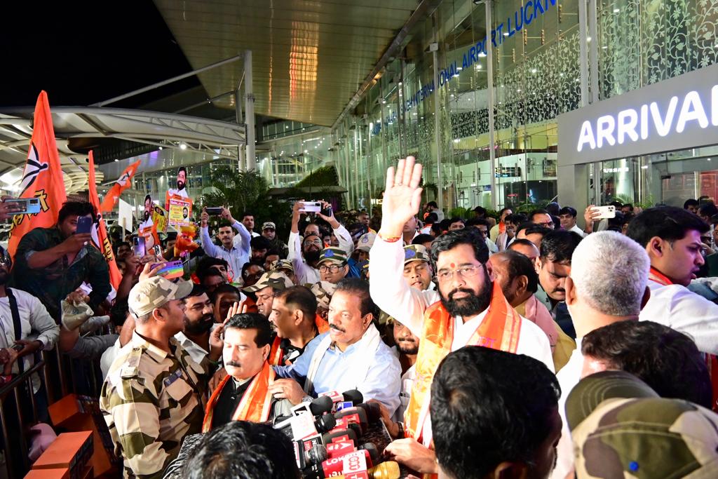 राज्याचे मुख्यमंत्री एकनाथ शिंदे यांचे अयोध्येत जंगी स्वागत करण्यात आले