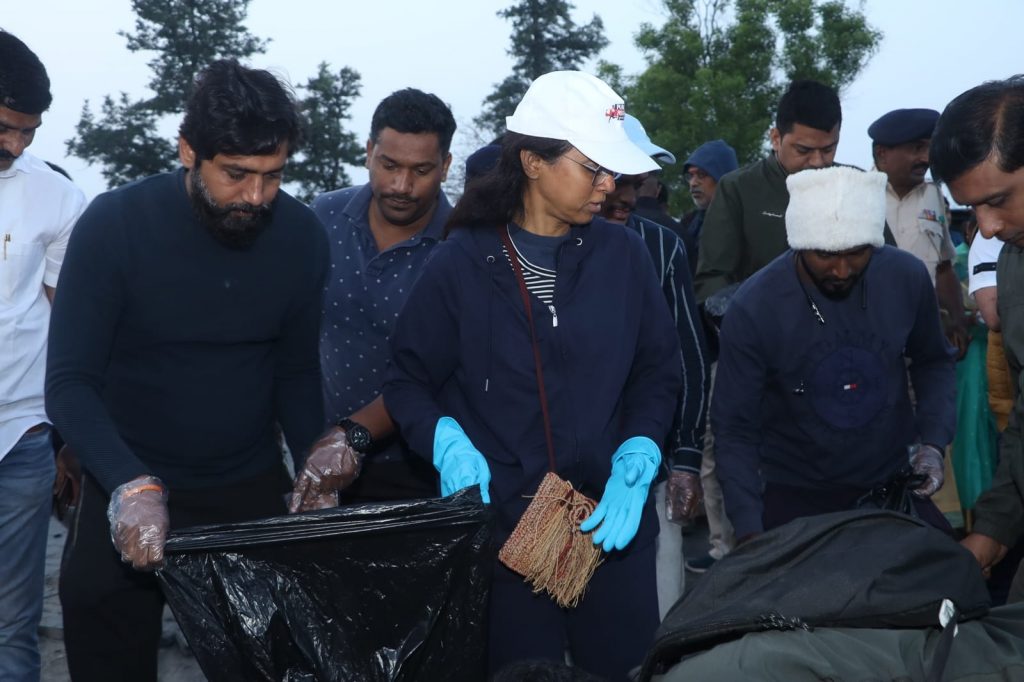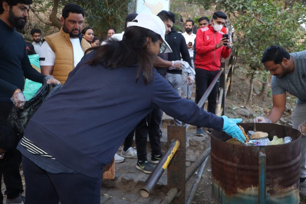 सुप्रिया सुळे यांच्या सोबत त्यांच्याटीमकडून गडावरील सर्व प्लॅस्टिक व इतर कचरा उचलून स्वच्छता करण्यात आली.