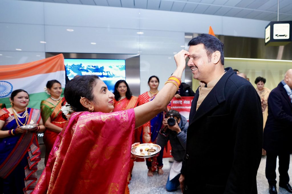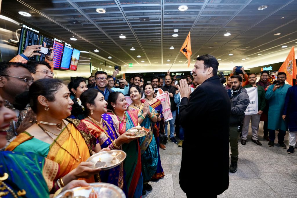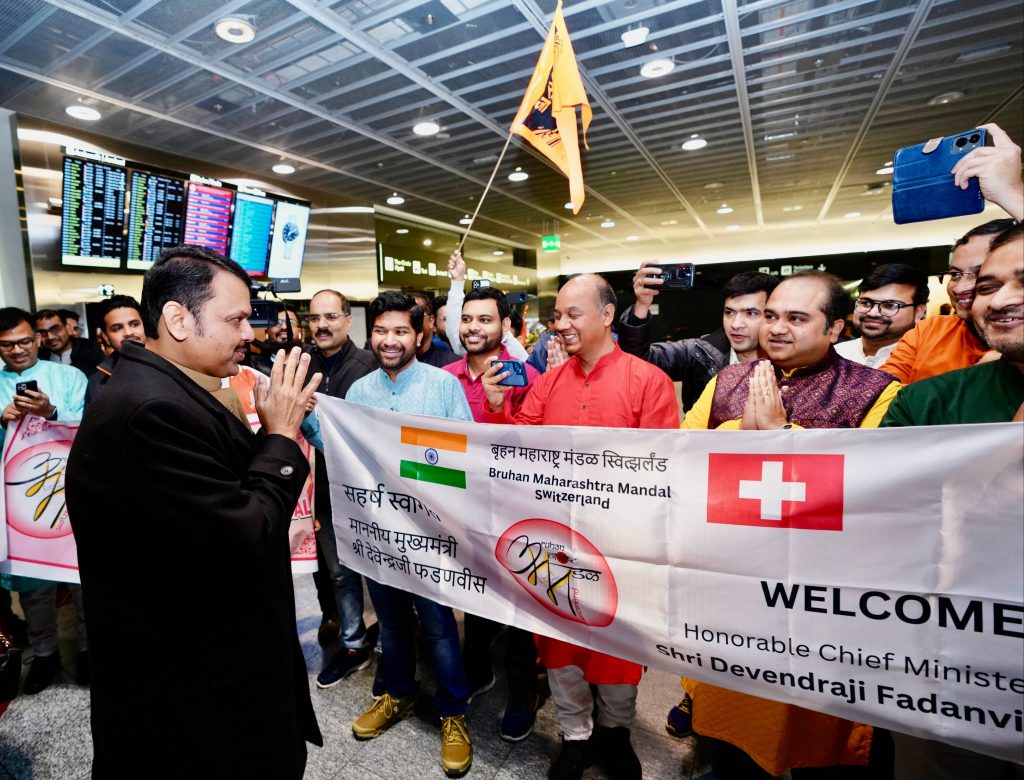 फडणवीस दाओसच्या दौऱ्यावर असताना झ्युरिक येथील मराठी भगिनींनी आणि बांधवांनी मराठमोळ्या पद्धतीने त्यांचे मोठ्या जल्लोषात स्वागत केले.