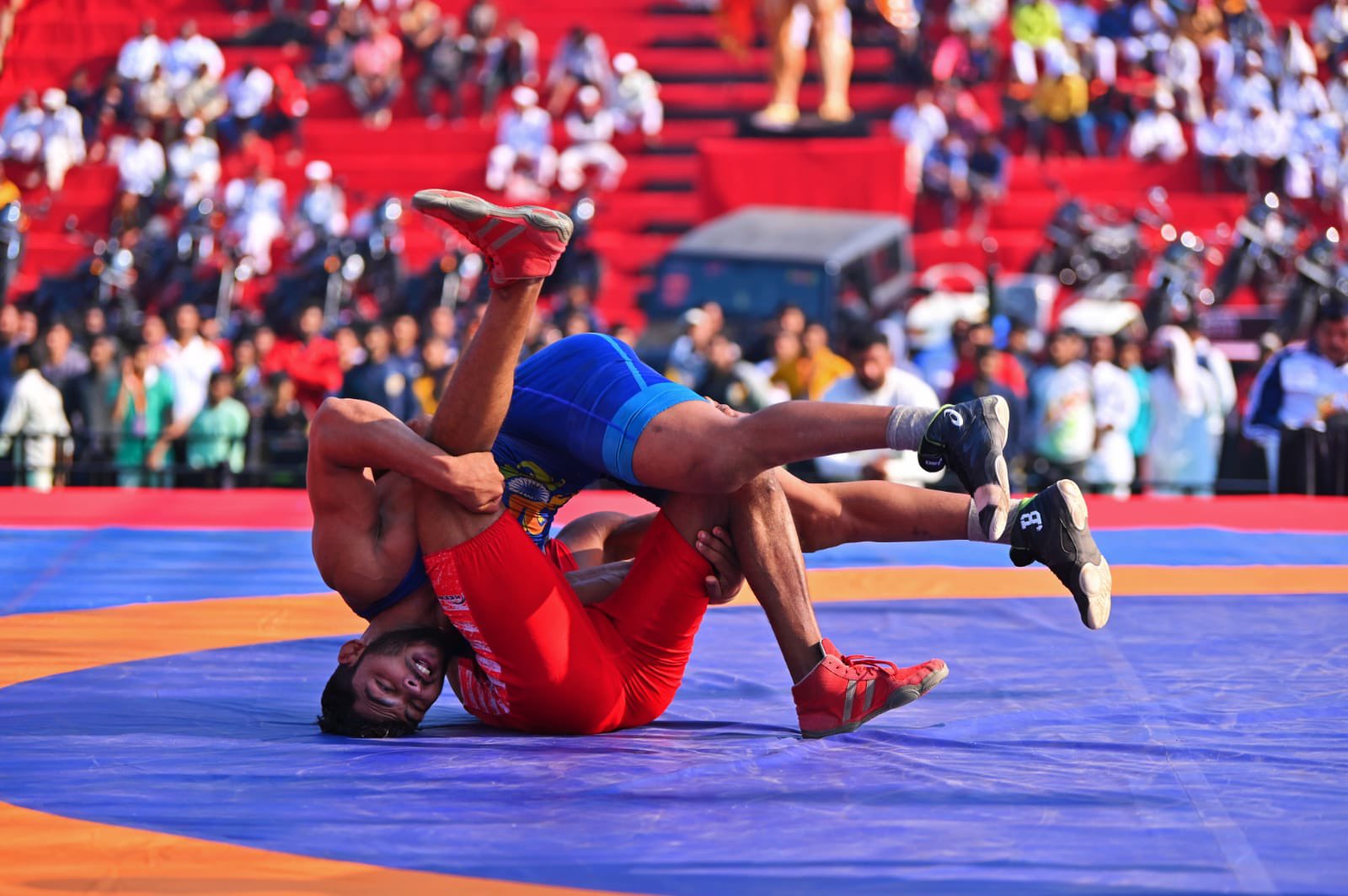 पुण्यात स्व. मामासाहेब मोहोळ क्रीडानगरीत महाराष्ट्र केसरी किताब कुस्ती स्पर्धा सुरू आहे.