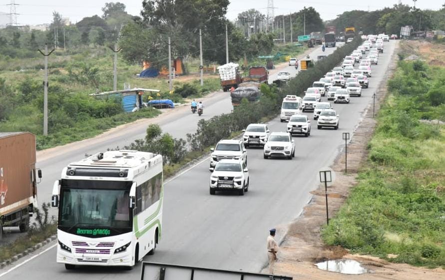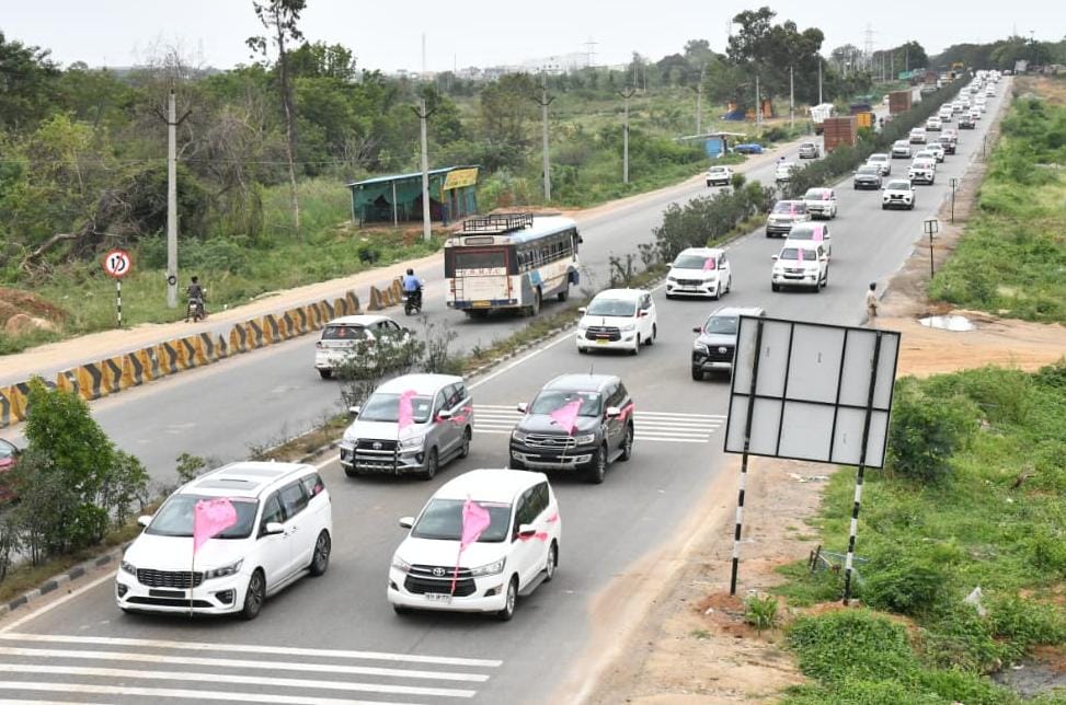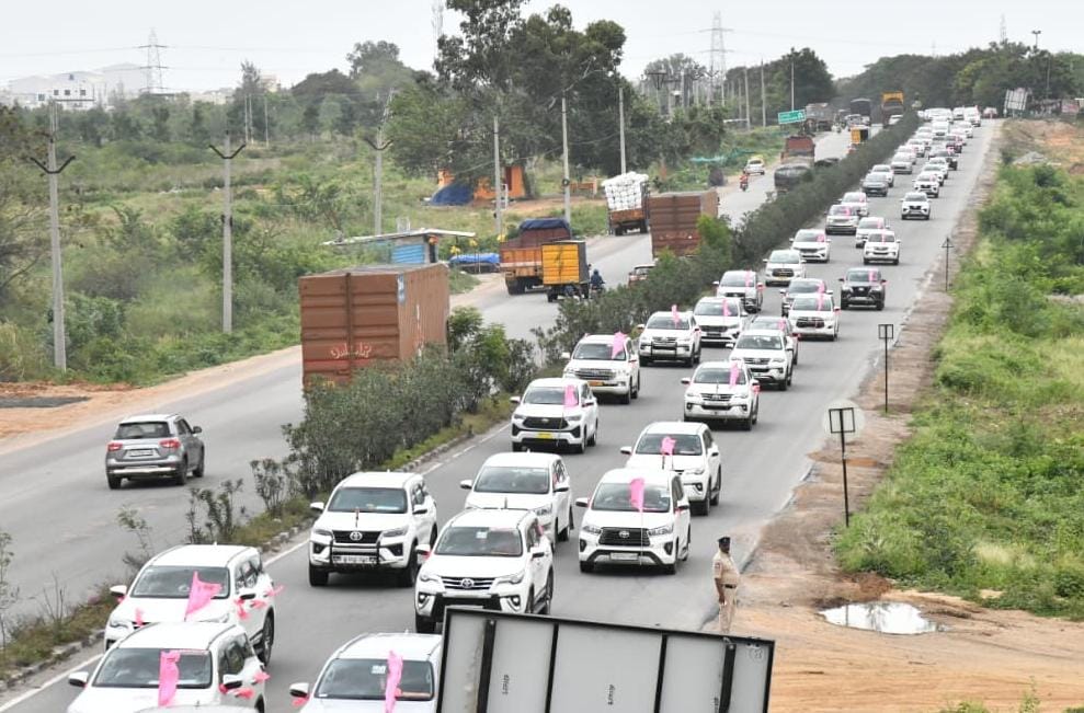 सीएम केसीआर यांच्यासोबत सुमारे 600 वाहनांच्या ताफ्यात राज्यभरातील नेते