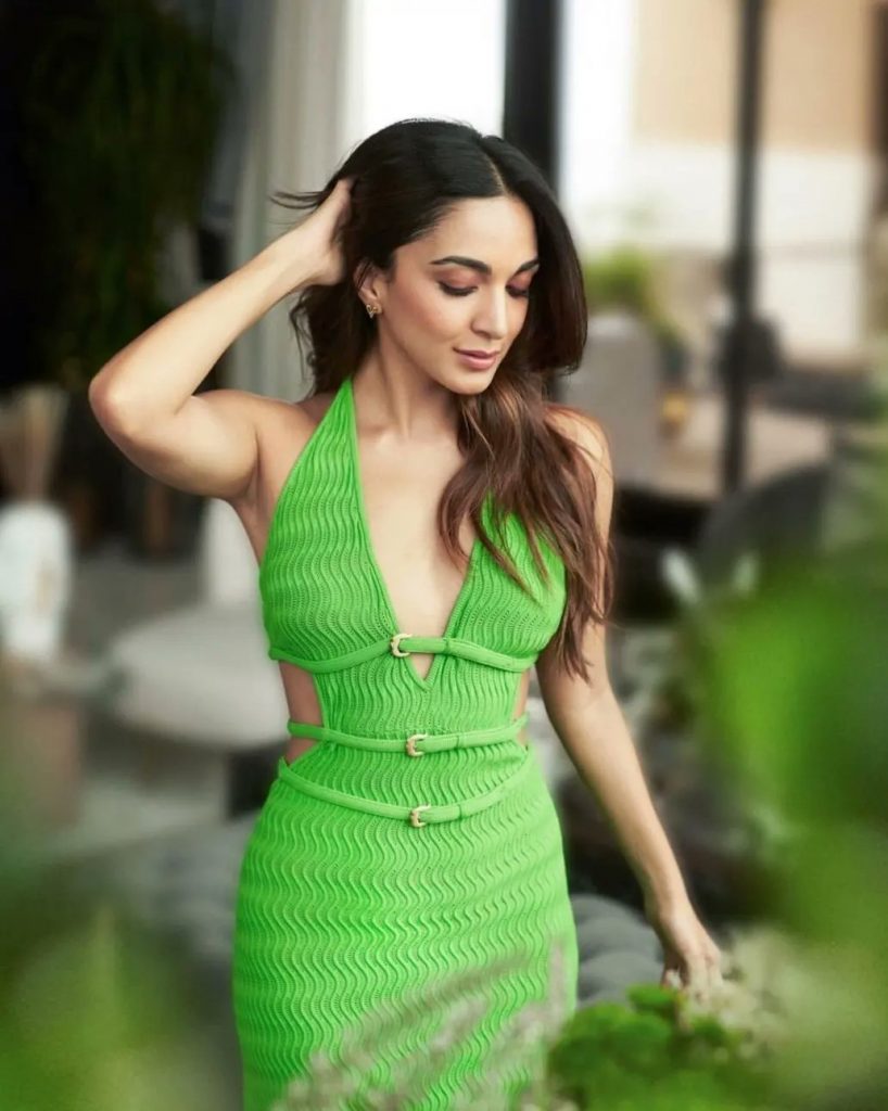 फोटोंमध्ये कियाराचा बोल्ड आणि हॉट लूक दिसत आहे. ग्रीन कलरच्या फ्रंट कट ड्रेसमध्ये कियारा खूपच सुंदर दिसत आहे.