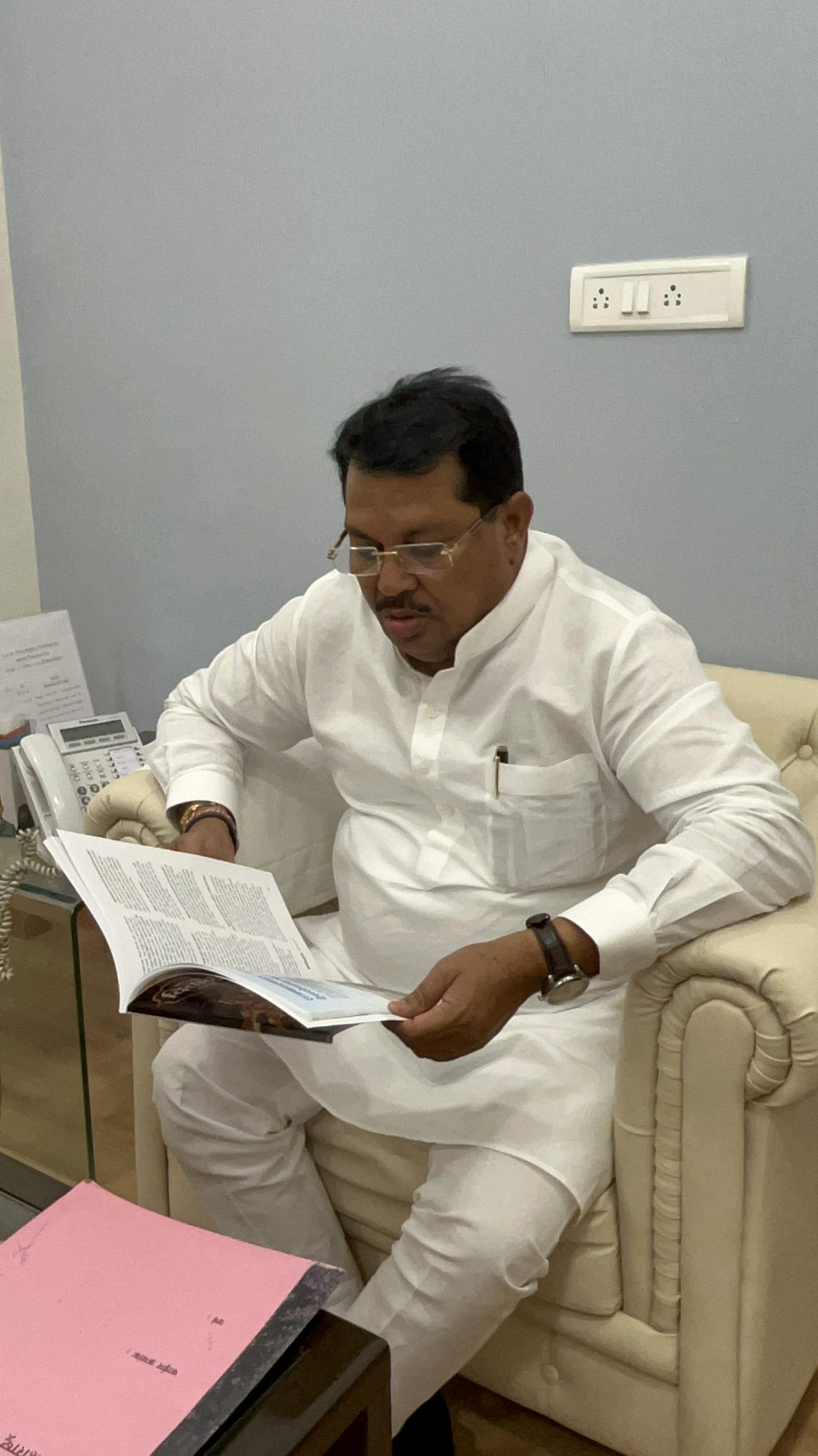 राज्य उत्पादन शुल्क मंत्री शंभूराज देसाई लेट्सअपमधील लेख वाचताना...