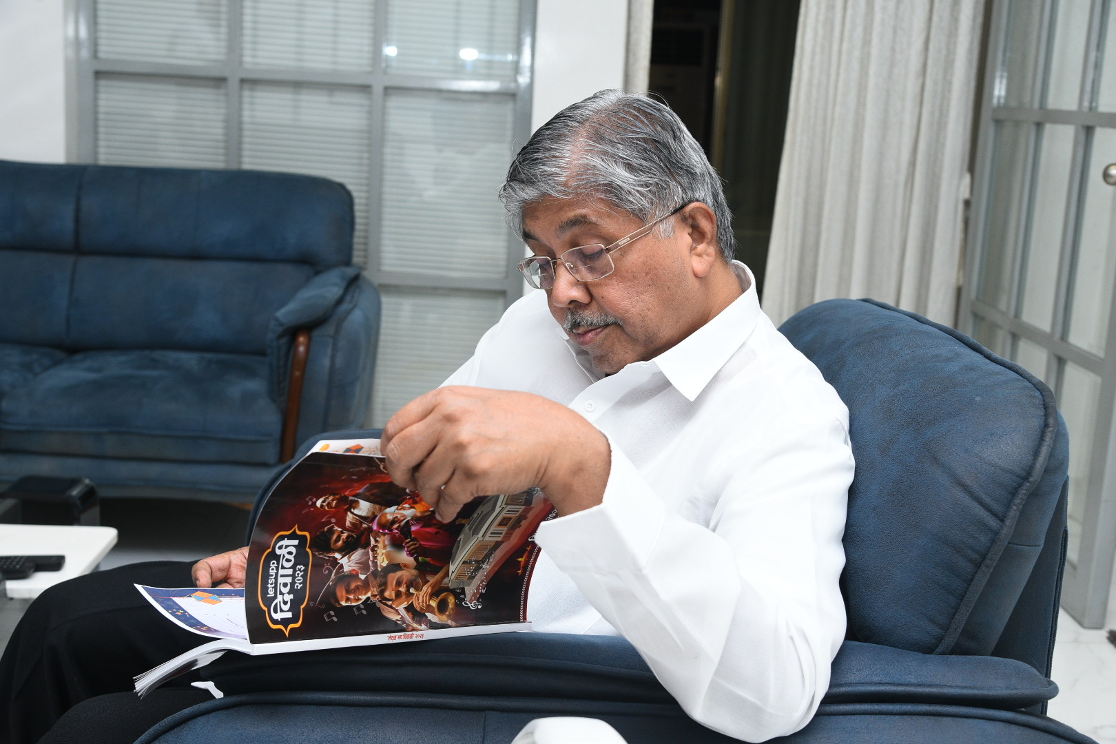 उच्च व तंत्र शिक्षणमंत्री चंद्रकांत पाटील हे लेट्सअपचा दिवाळी अंक वाचताना...