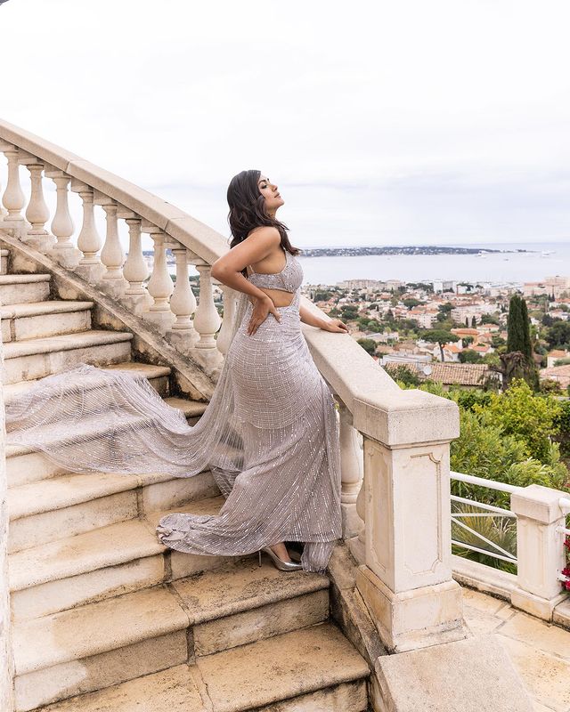 मृणाल ठाकूर चमकदार साडीत कान्सच्या रेड कार्पेटवर