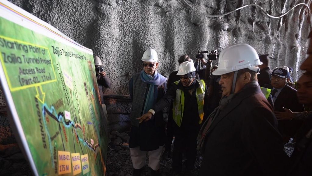 केंद्रीय मंत्री नितीन गडकरी यांनी जम्मू- काश्मीरचे राज्यपाल मनोज सिन्हा यांच्यासह काश्मीरमधील सोनमर्ग येथील झोजिला बोगद्याची पाहणी केली.