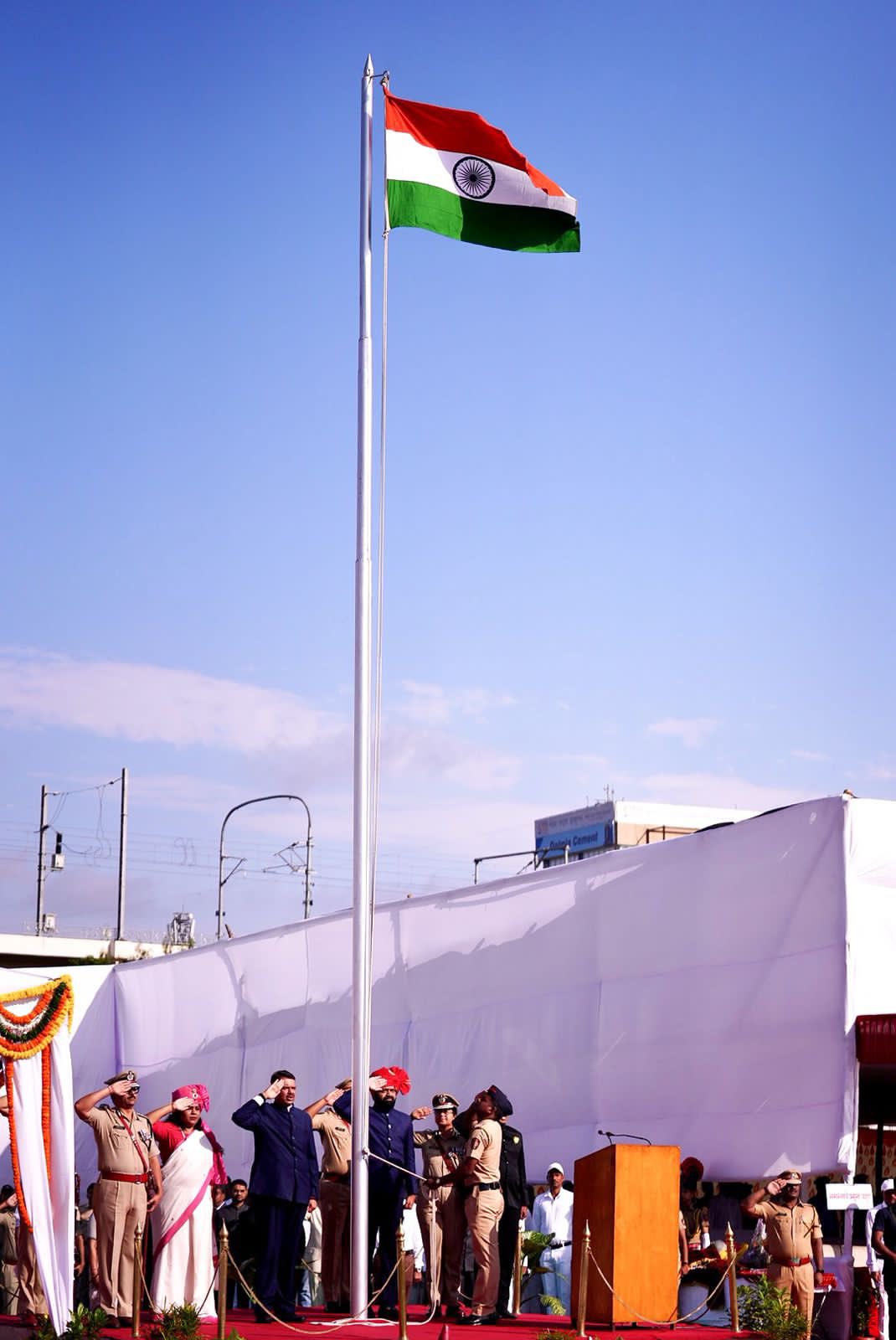 ध्वजारोहन झाल्यानंतर फडणवीस यांनी उपस्थितांना संबोधित केले. यावेळी त्यांनी राज्य सरकारच्या अनेक उपक्रमांची, योजनांची माहिती उपस्थितांना दिली.