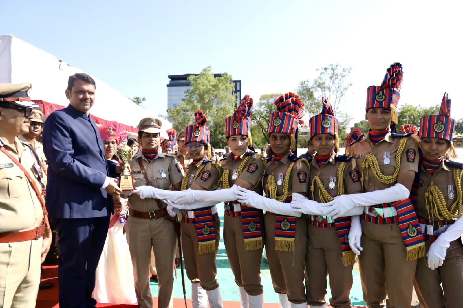 यावेळी फडणवीस यांनी परेडचे संचलन करणाऱ्या चमूशी संवाद साधला. त्यांचे कौतूकही फडणवीसांनी केले.