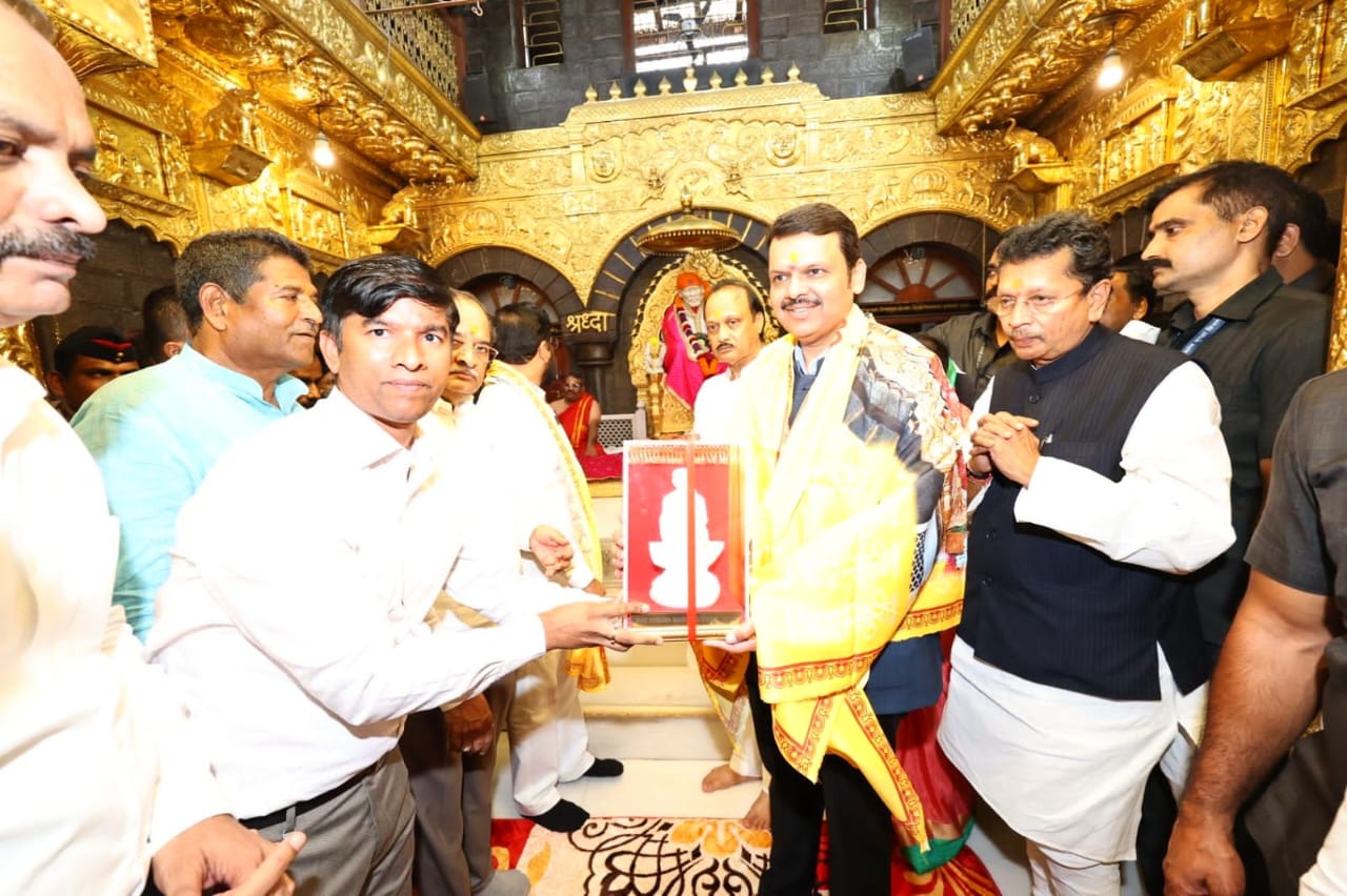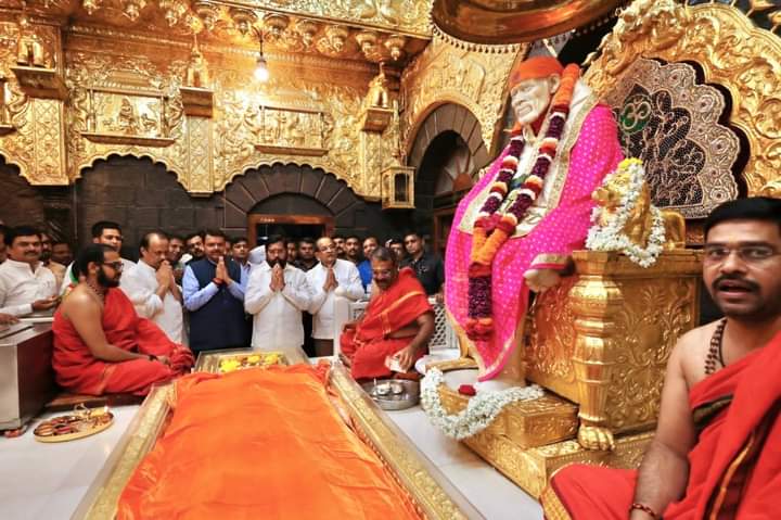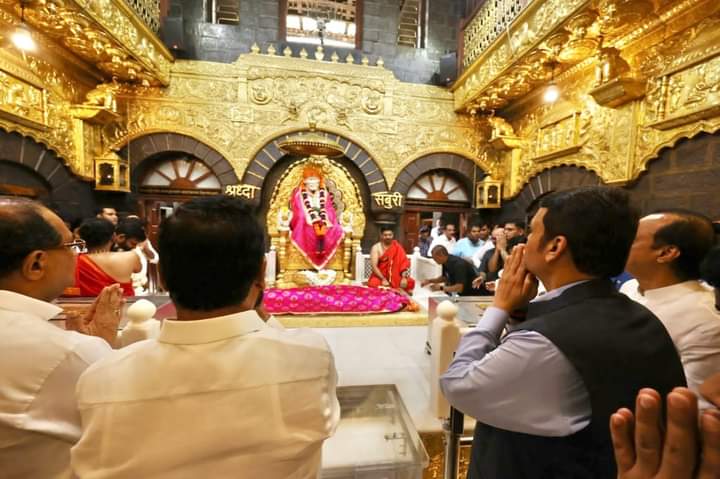 शिर्डी येथील जगप्रसिद्ध श्री साईबाबा मंदिराला भेट दिली. या शुभ प्रसंगी मला श्री साईबाबांची पूजा करण्याचे आणि त्यांचे आशीर्वाद घेण्याचे भाग्य लाभले. मुख्यमंत्री एकनाथ शिंदे , उपमुख्यमंत्री अजित पवार, मंत्री राधाकृष्ण विखे पाटील , मंत्री दीपक केसरकर उपस्थित होते. यावेळी मंदिराच्या विश्वस्तांनी सर्वांचे स्वागत केले. असं फडणवीस म्हणाले.