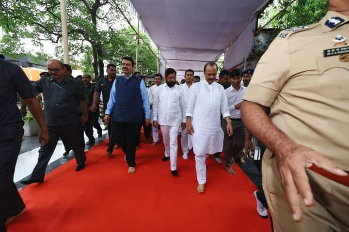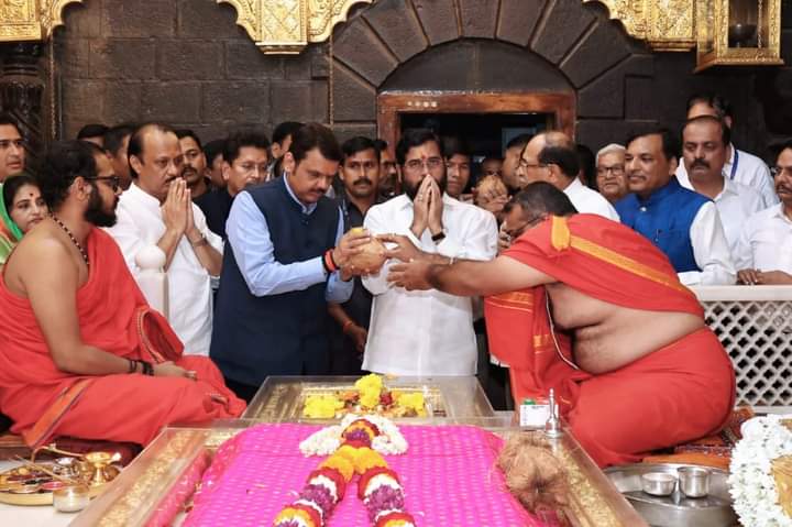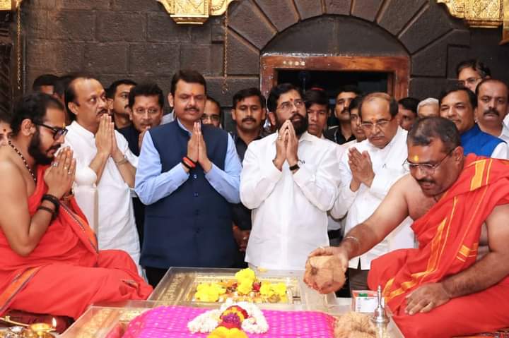 यावेळी मंदिराच्या विश्वस्तांनी मुख्यमंत्री शिंदे, दोन्ही उपमुख्यमंत्री, मंत्री या सर्वांचे स्वागत केले.
