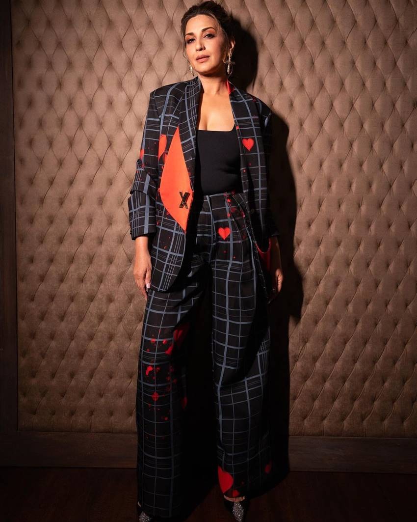 या काळ्या आणि लाल रंगाच्या पँट सूटमध्ये अभिनेत्री खूपच सुंदर दिसत होती.