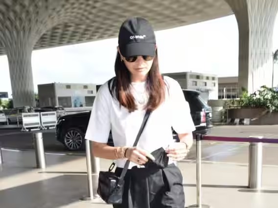 एअरपोर्ट लुकसाठी अनुष्काने काळ्या पँटसोबत पांढरा टी-शर्ट आणि कॅप घातली होती. तिने तिच्या कॅज्युअल लुकसह काळा गॉगल घातला होता ज्यामुळे तिचा लुक खूपच डॅशिंग झाला होता. यासोबतच अनुष्काने पांढऱ्या रंगाचे स्नीकर्सही घातले होते.