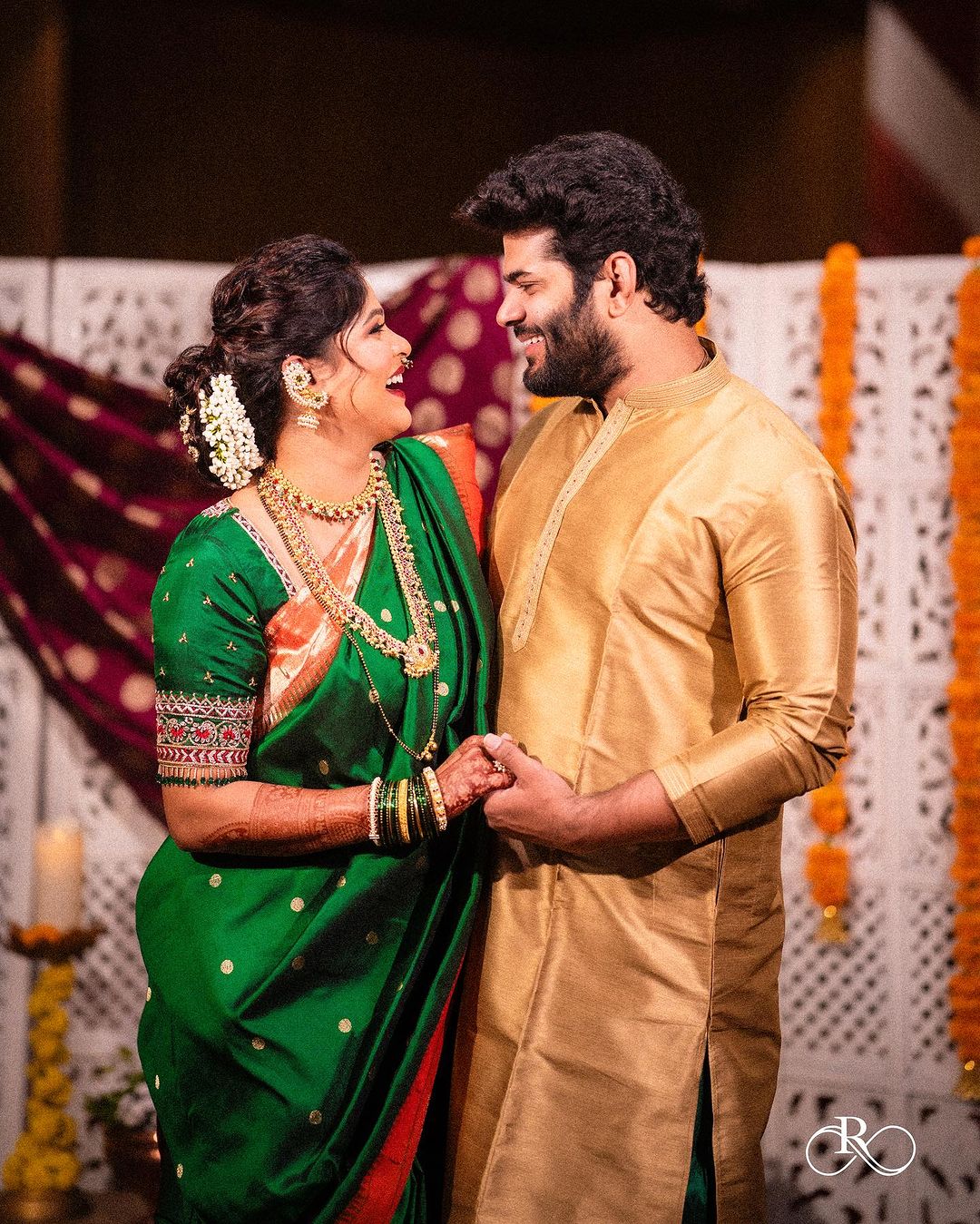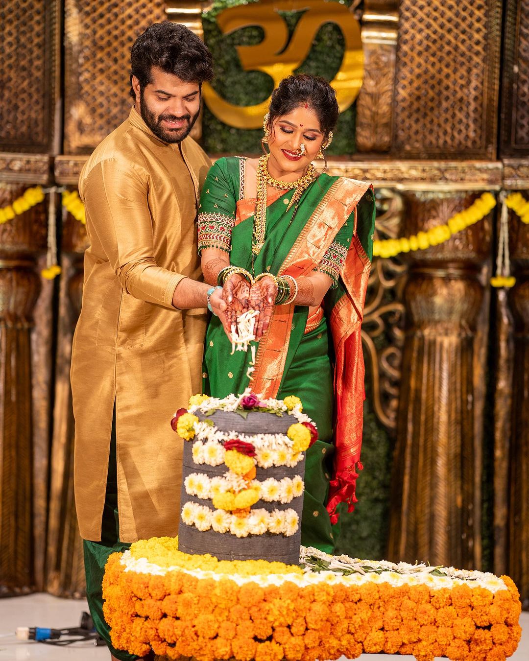 आता या नवविवाहित जोडप्याने त्यांची पहिलं मंगळागौर पूजन केलं आहे. याचे खास फोटो त्यांनी शेअर केले आहेत.