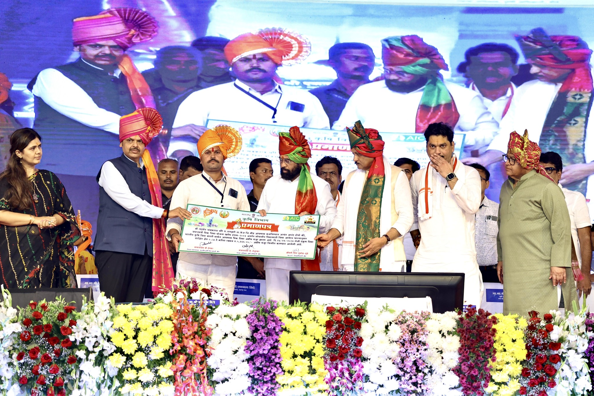आज (5 डिसेंबर) बीडमध्ये शासन आपल्या दारी या कार्यक्रम झाला. यावेळी मंचावर मुख्यमंत्री एकनाथ शिंदे, उपमुख्यमंत्री अजित पवार, कृषीमंत्री धनंजय मुंडे आणि त्यांच्या भगिणी भाजप नेत्या पंकजा मुंडे देखील उपस्थित होत्या.