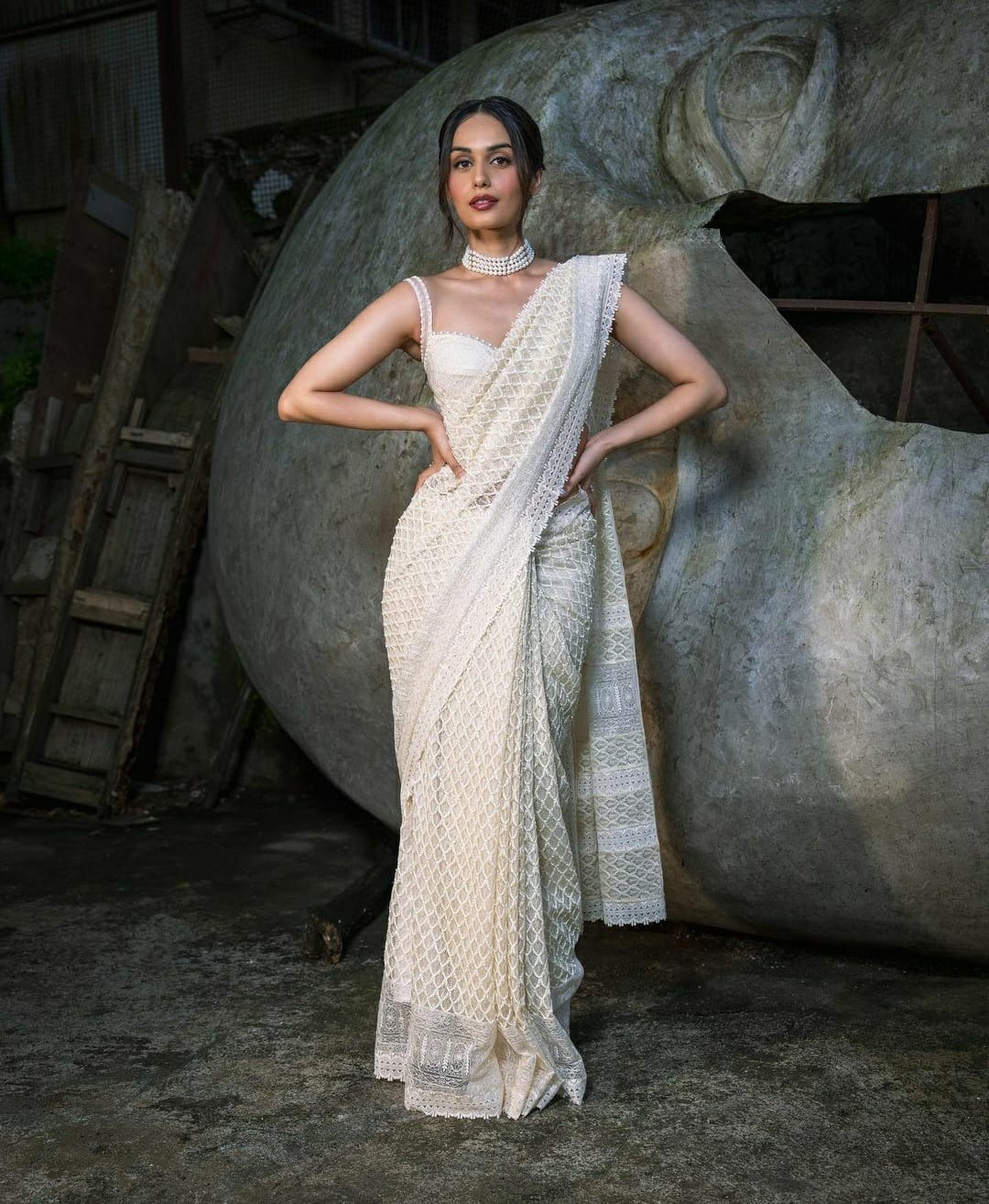 Photos : व्हाईट साडीमध्ये मानुषी छिल्लरचा किलर अंदाज, पाहा फोटो