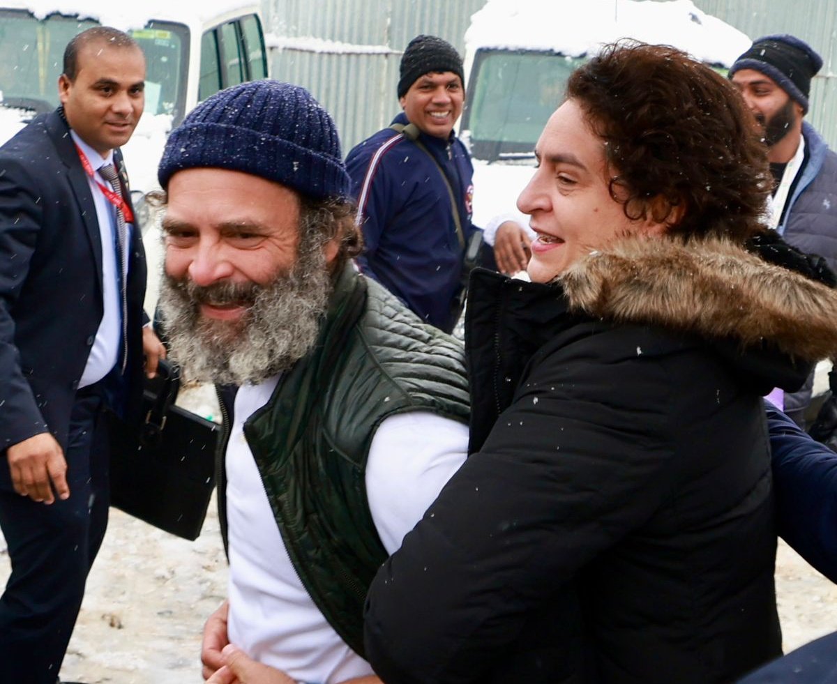 यावेळी राहुल आणि प्रियांका गांधी यांनी बर्फात खेळण्याचा आनंद घेतला.