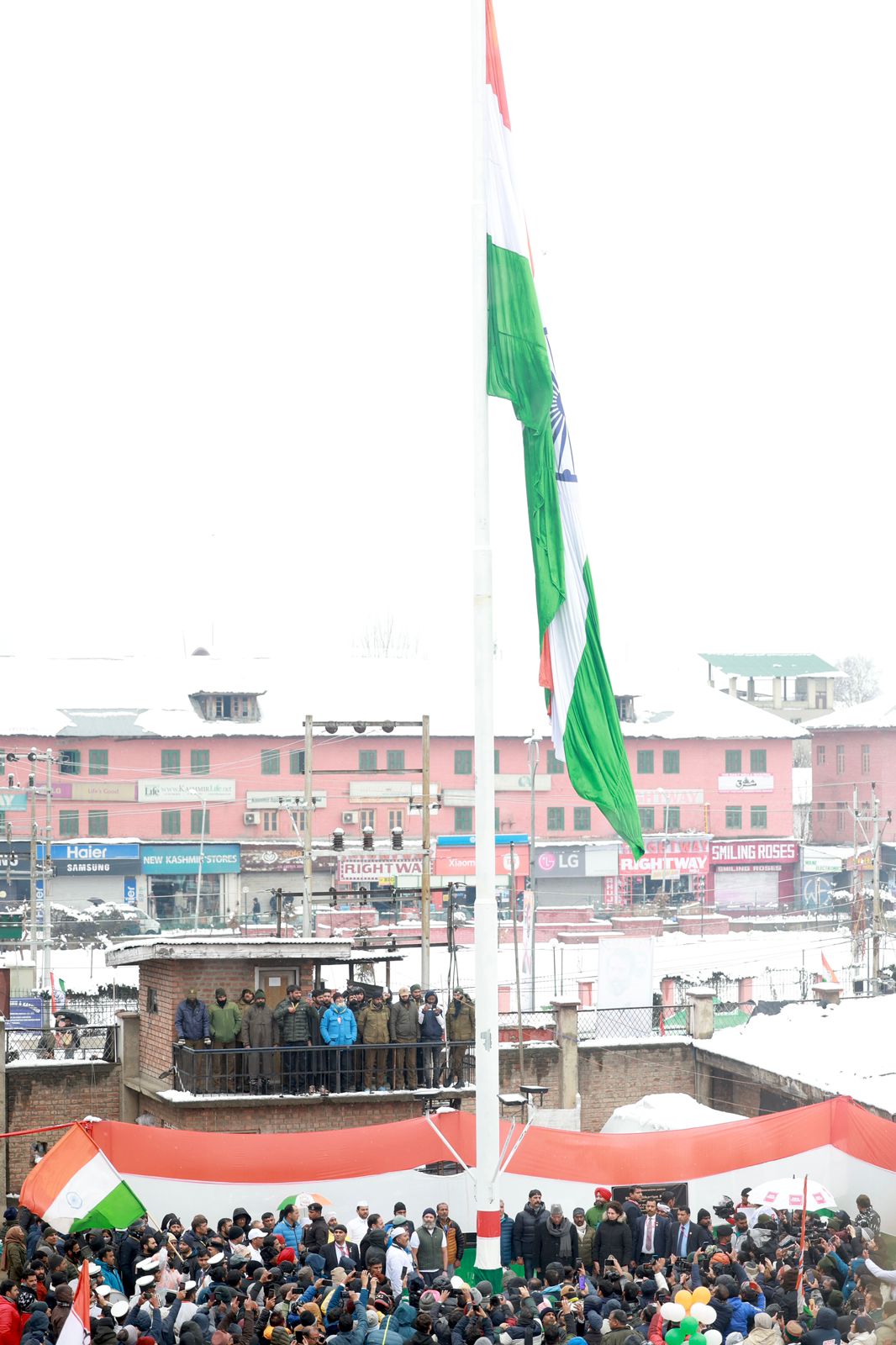 सभेआधी राहुल गांधी यांनी लाल चौक येथे तिरंगा फडकावला.
