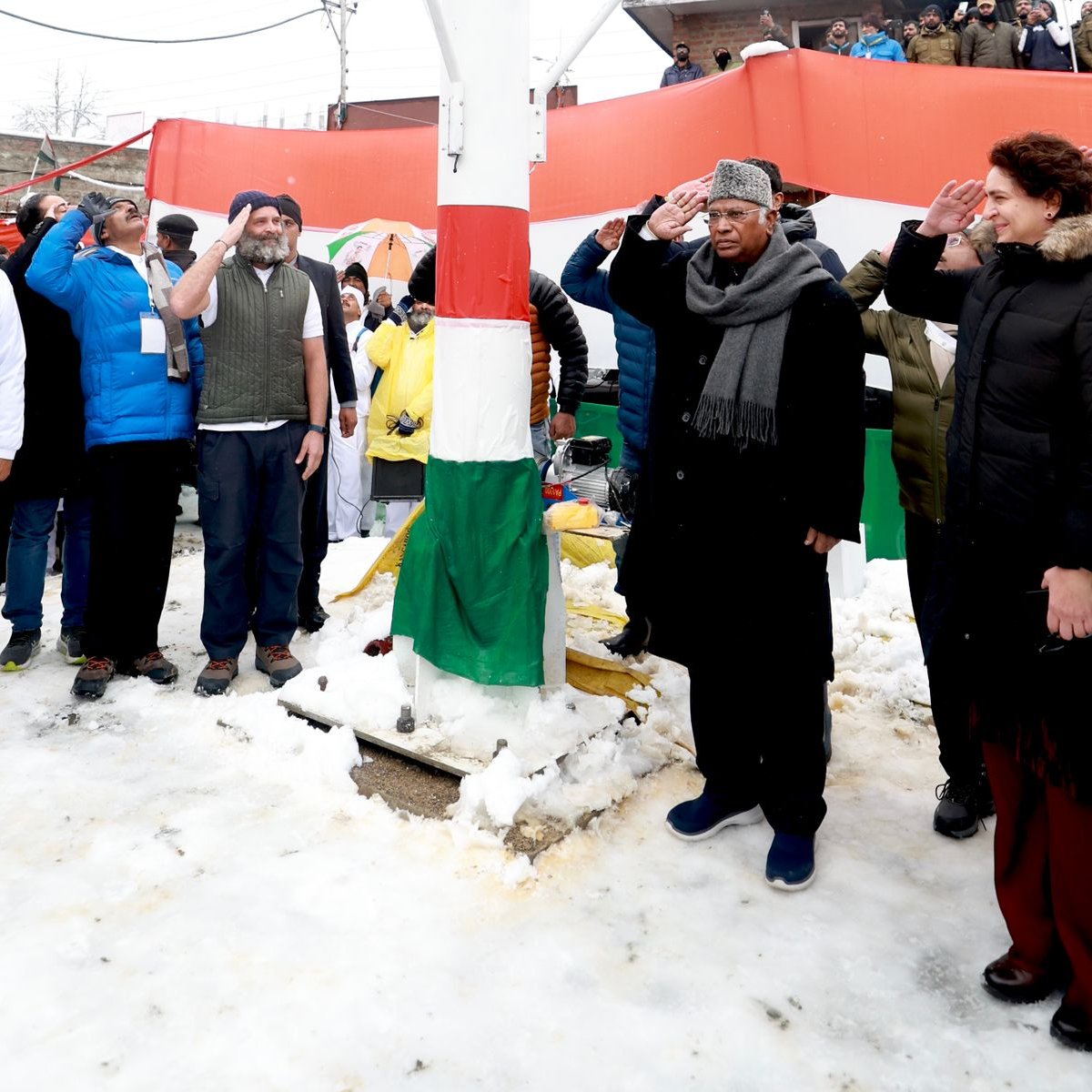 कन्याकुमारीपासून सुरु झालेली राहुल गांधी यांची भारत जोडो यात्रा आज श्रीनगर मध्ये संपली.