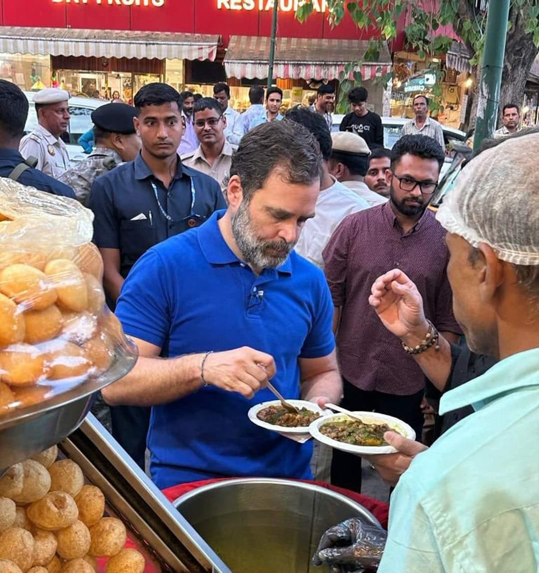 कॉंग्रेस नेते राहुल गांधी स्ट्रीट फूडचा आस्वाद घेताना दिसले