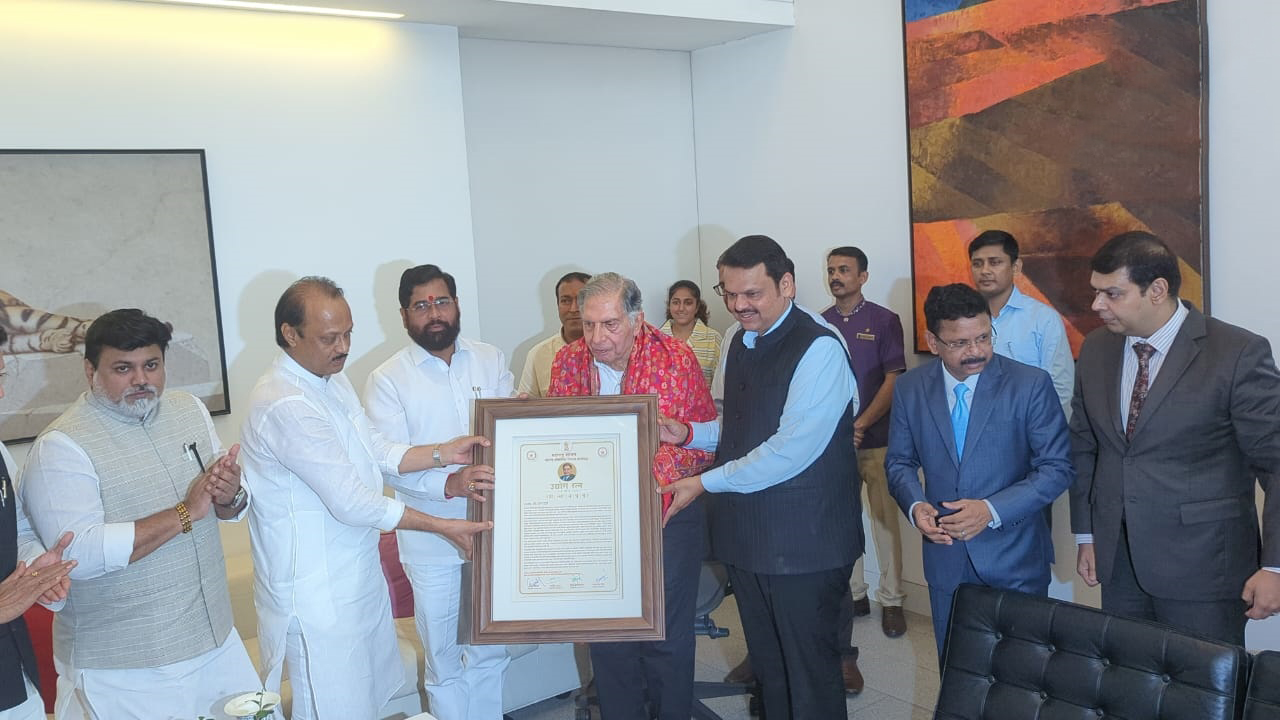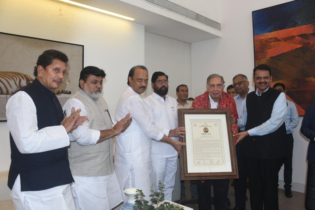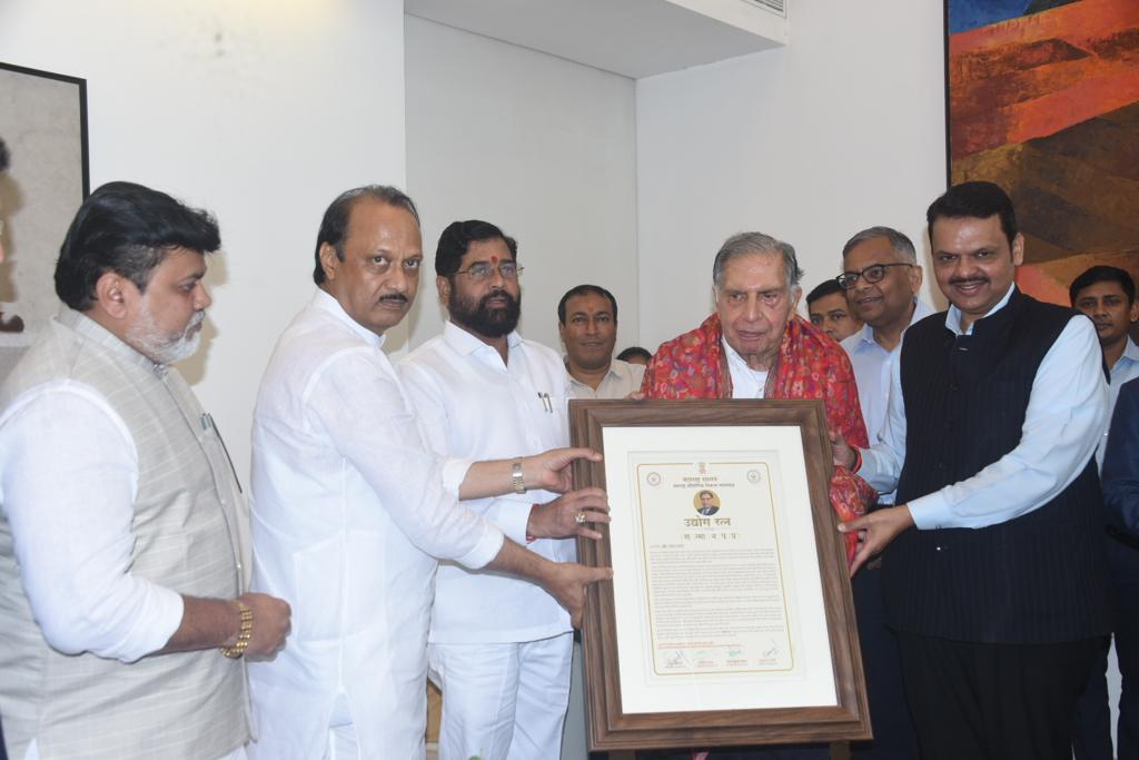 मुख्यमंत्री एकनाथ शिंदे , उपमुख्यमंत्री देवेंद्र फडणवीस आणि उपमुख्यमंत्री अजित पवार यांनी रतन टाटा यांच्या कुलाबा निवासस्थानी महाराष्ट्र शासनाचा उद्योगरत्न पुरस्कार सन्मानपूर्वक गौरविले.