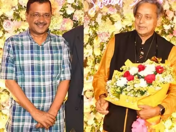 यावेळी केजरीवाल ट्राउजर आणि त्यांचा सिग्नेचर चेक्ड शर्ट मध्ये दिसले. तर शशि थरूर यांनी गोल्डन यलो सिल्क कुर्ता घातला होता.