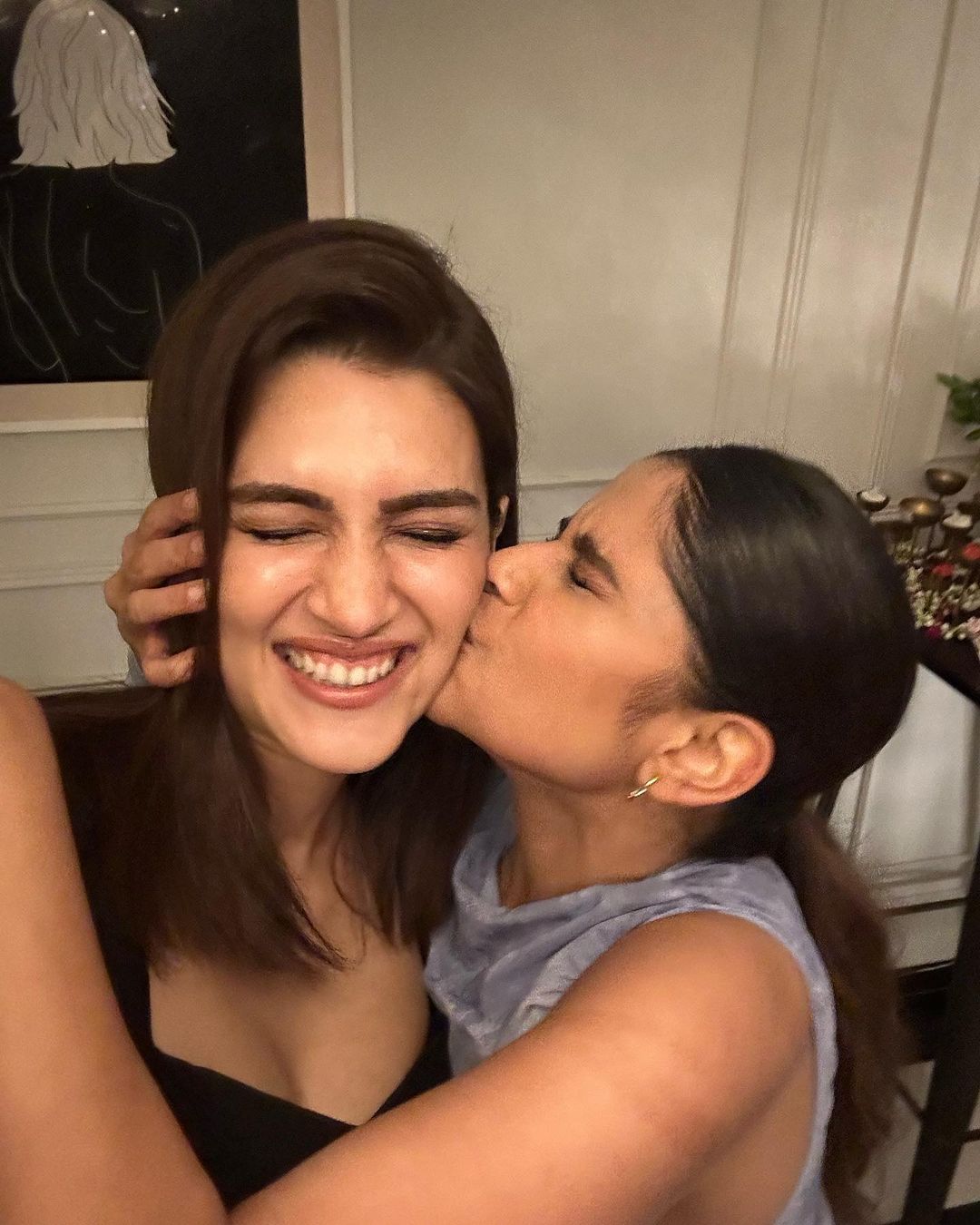 या अभिनंदन कार्यक्रमाचे फोटो सोशल मिडीयावर फोटो शेअर आहेत. त्यामध्ये ती क्रितीच्या गालार किस करताना दिसत आहे.