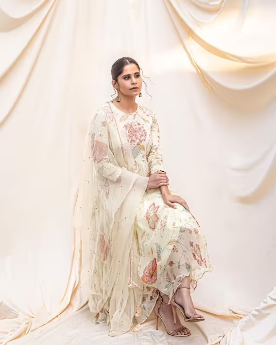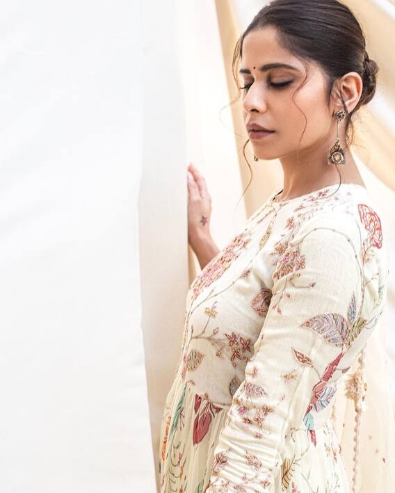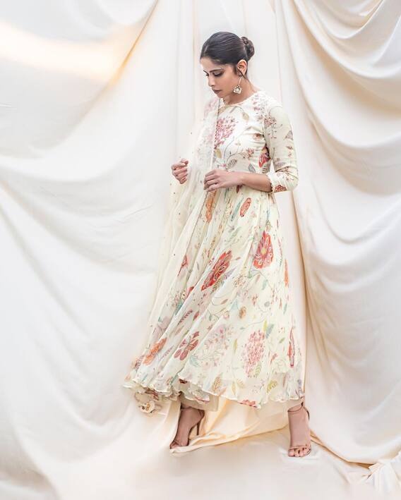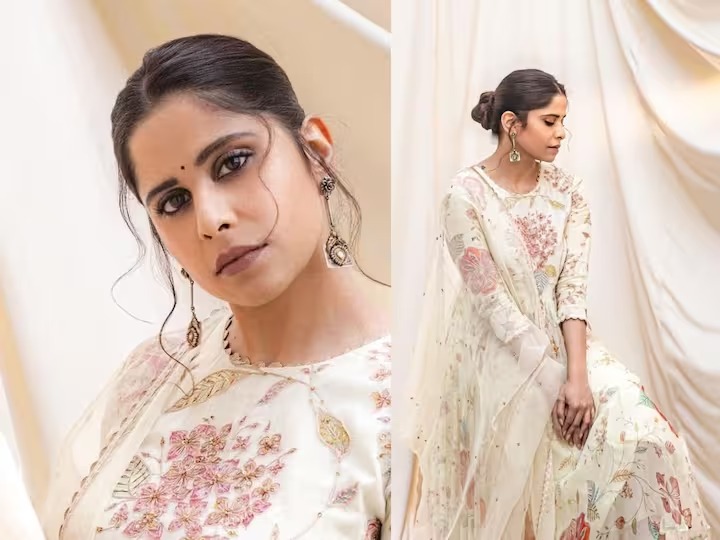 व्हाईट प्रिंटेड ड्रेस अन् गोल्डन इअरिंग्स अशा लूकमधील फोटो सईनं शेअर केले आहेत.