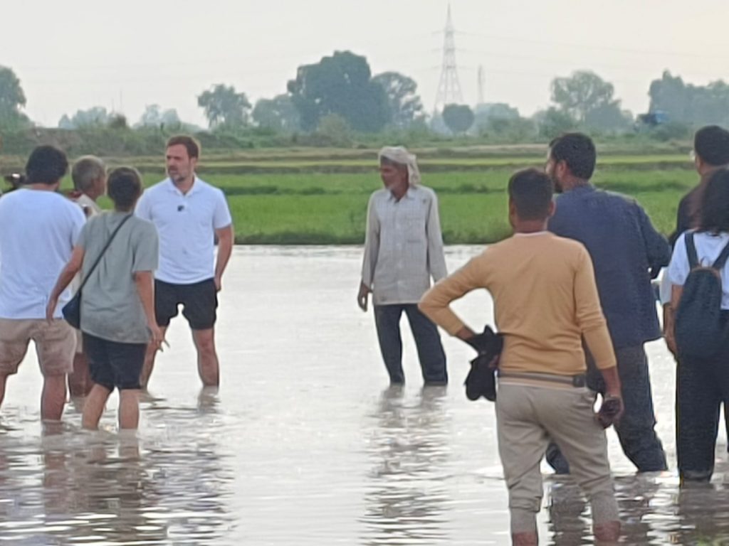 काँग्रेस नेते राहुल गांधी शनिवारी सकाळी दिल्लीहून शिमल्याला जात असताना अचानक सोनीपत येथे थांबले. येथे त्यांनी शेतात काम करणाऱ्या शेतकऱ्यांशी संवाद साधला.