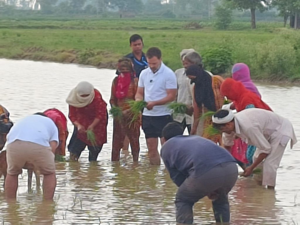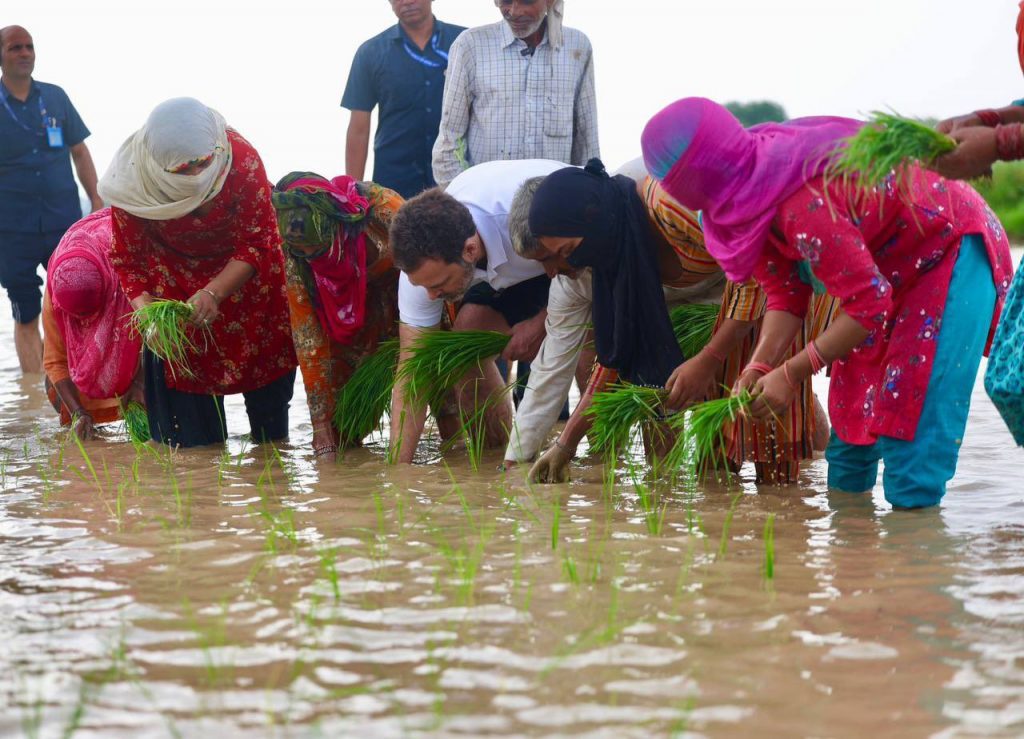 राहुल गांधी यांनी शेतांची पाहणी केली. शेतात भात लावणीची माहिती घेतली आणि स्वतः मजुरांसह भात लावणी केली.