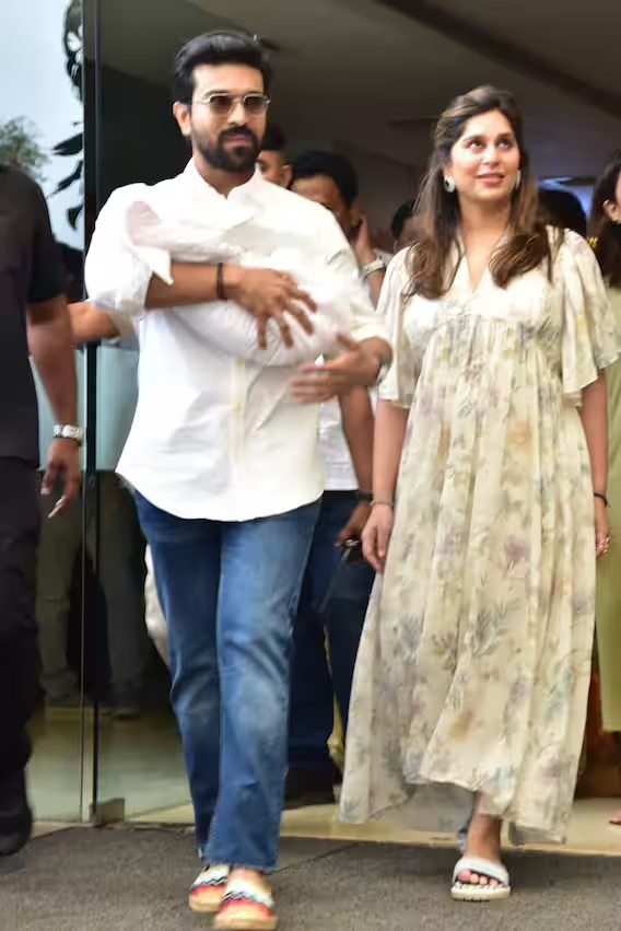 मुलीला जन्म दिल्यानंतर उपासना हॉस्पिटलबाहेर राम चरणसोबत दिसली. त्यांनी मीडियाला पोजही दिली. त्याचा फोटो एखाद्या परफेक्ट फॅमिली पिक्चरसारखा दिसतो.