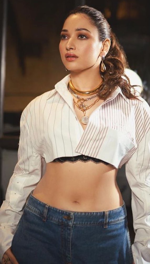 क्रॉप शर्ट आणि डेनिम जीन्समध्ये तमन्ना भाटियाचा कहर, पाहा किलर लूक
