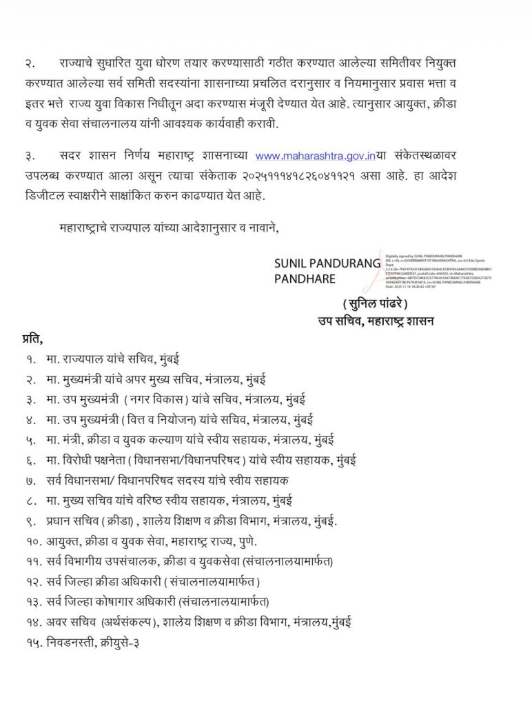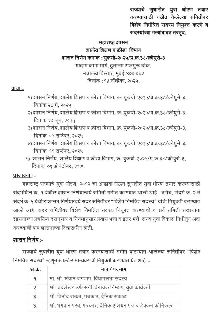 पुणे : महाराष्ट्र शासनाने राज्यासाठी सुधारित युवा धोरण तयार करण्यासाठी स्थापन केलेल्या उच्चस्तरीय समितीत विशेष निमंत्रित सदस्य म्हणून पुण्यातील युवक कार्यकर्ते सनी विनायक निम्हण (Sunny Nimhan) यांची निवड करण्यात आली आहे. शालेय शिक्षण व क्रीडा विभागाने जारी केलेल्या शासन निर्णयानुसार ही नियुक्ती करण्यात आली आहे. आमदार संग्राम जगताप पत्रकार विनोद राऊत आणि पत्रकार भगवान परब यांचाही या समितीत समावेश आहे.
